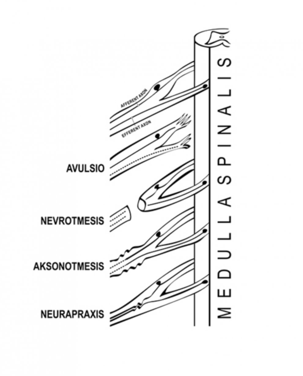 Visoko-energijske poškodbe povzročijo hujše posledice, ki vključujejo popolno pretrganje živcev (nevrotmeza) ali iztrganje (avulzijo) živčnih korenin iz hrbtenjače. Pri popolnem pretrganju ali iztrganju živcev ne moremo pričakovati izboljšanja. Za obnovo funkcije je nujno potrebna operacija.