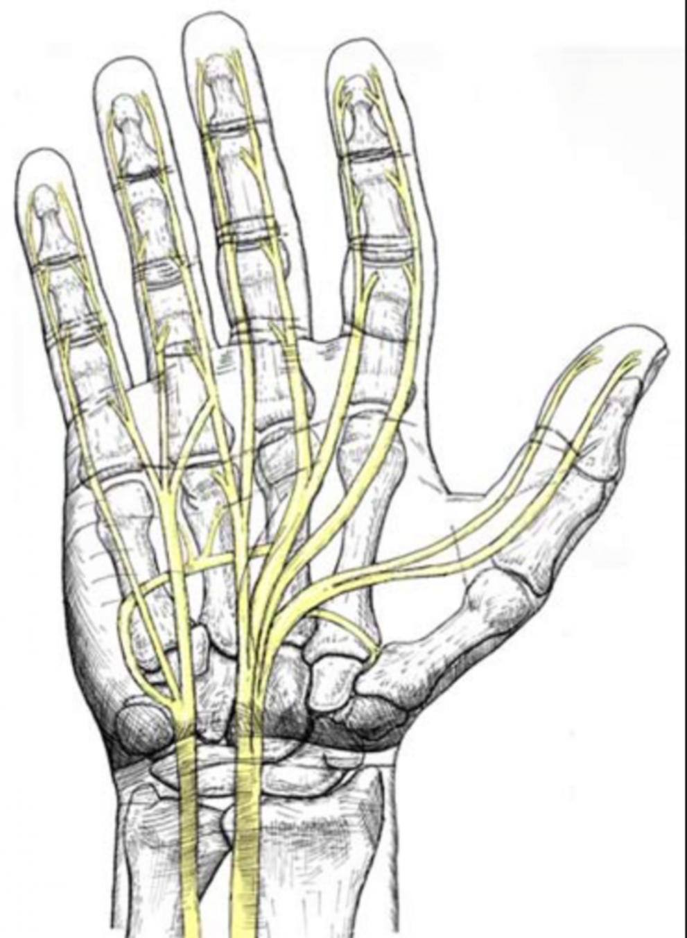 Živci prenašajo signale med centralnim živčevjem (možgani, hrbtenjačo) in ostalimi deli telesa. Sestavljeni so iz živčnih vlaken (aksonov) po katerih se prevajajo signali in ovojnic, ki omogočajo prehrano in ščitijo vlakna. Motorična vlakna prenašajo navodila za krčenje iz možganov do mišic in omogočajo premikanje. Preko senzoričnih vlaken se iz čutilnih organov v koži do možganov prenašajo občutki kot so dotik, pritisk, temperatura in bolečina. Pravilno delovanje roke temelji na usklajenem delovanju perifernega in centralnega živčnega sistema.